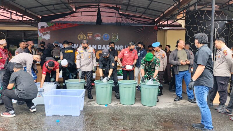 Acara tersebut juga dihadiri oleh unsur Forum Koordinasi Pimpinan Daerah (Forkopimda) serta sejumlah perwakilan organisasi masyarakat dan media yang turut menyaksikan proses pemusnahan barang bukti tersebut.